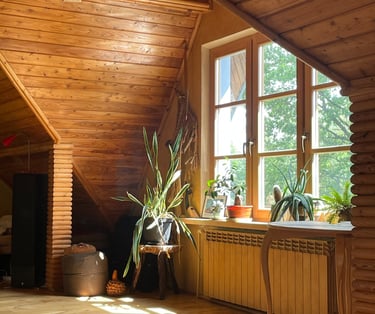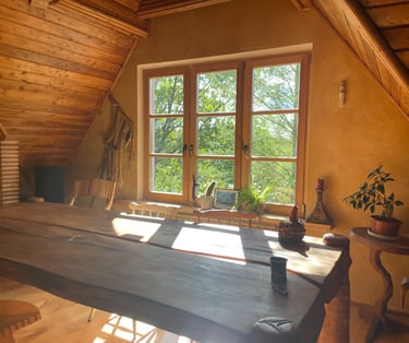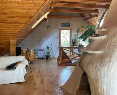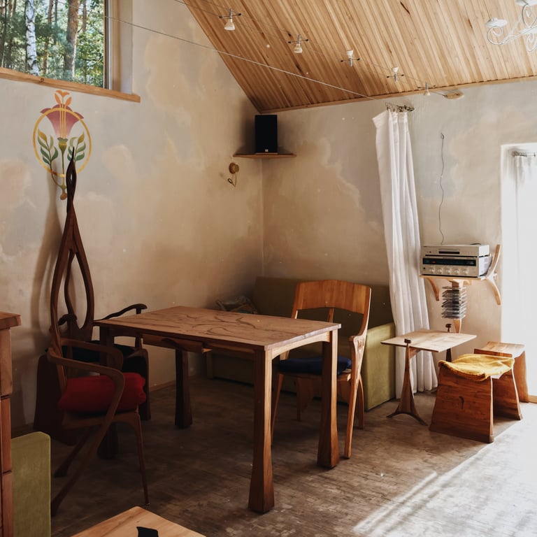 NUTY ROSY nie jest miejscem głównie komercyjnym, jest to idea, gdzie sztuka gra pierwsze skrzypce. Pojęcie "komfortu" skierowane jest na formę, klimat, harmonię z Naturą. Miejsce stworzone przez gospodarza - Piotra Maciejuka, artysty rękodzielnika.